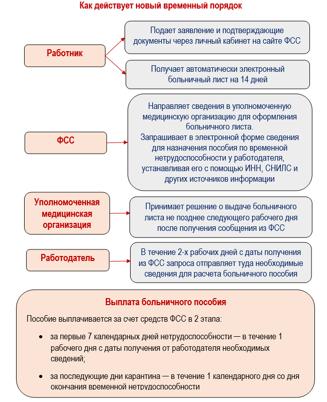 Еще одна важная корректировка существующих правил — введен особый порядок оформления и выплаты пособий по временной нетрудоспособности в случае карантина: