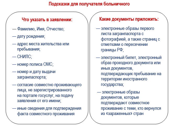 для застрахованных лиц, находящихся на карантине, после прибытия из «зараженных» коронавирусом стран, больничный оформляется автоматически в электронной форме сразу на 14 дней — для оформления больничного и получения пособия по нетрудоспособности нужно подать в электронном виде заявление и подтверждающие документы в ФСС.