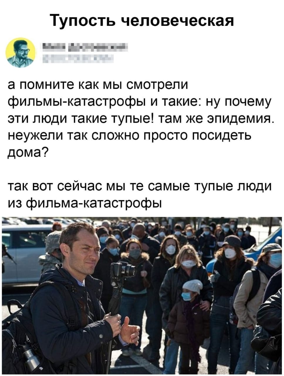 Фёдор! А позитива Вы не видите? Только подозрительные взгляды? А сколько волонтеров трудятся безвозмездно? Среди них не только студенты, но и люди средних лет. Знаю людей, которые на своем личном транспорте разводят продукты нуждающимся. Их никто не обязывает, но они это делают. А врачи, сутками не выходят из больниц. Настоящие врачи, которые в такое время не сидят на нашем форуме. Все это тоже есть в нашей жизни, а не только негатив, к которому мы приросли, что другое видеть нам трудно. Писала от души. Не сердитесь, если наши взгляды не совпали.