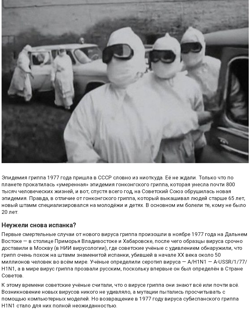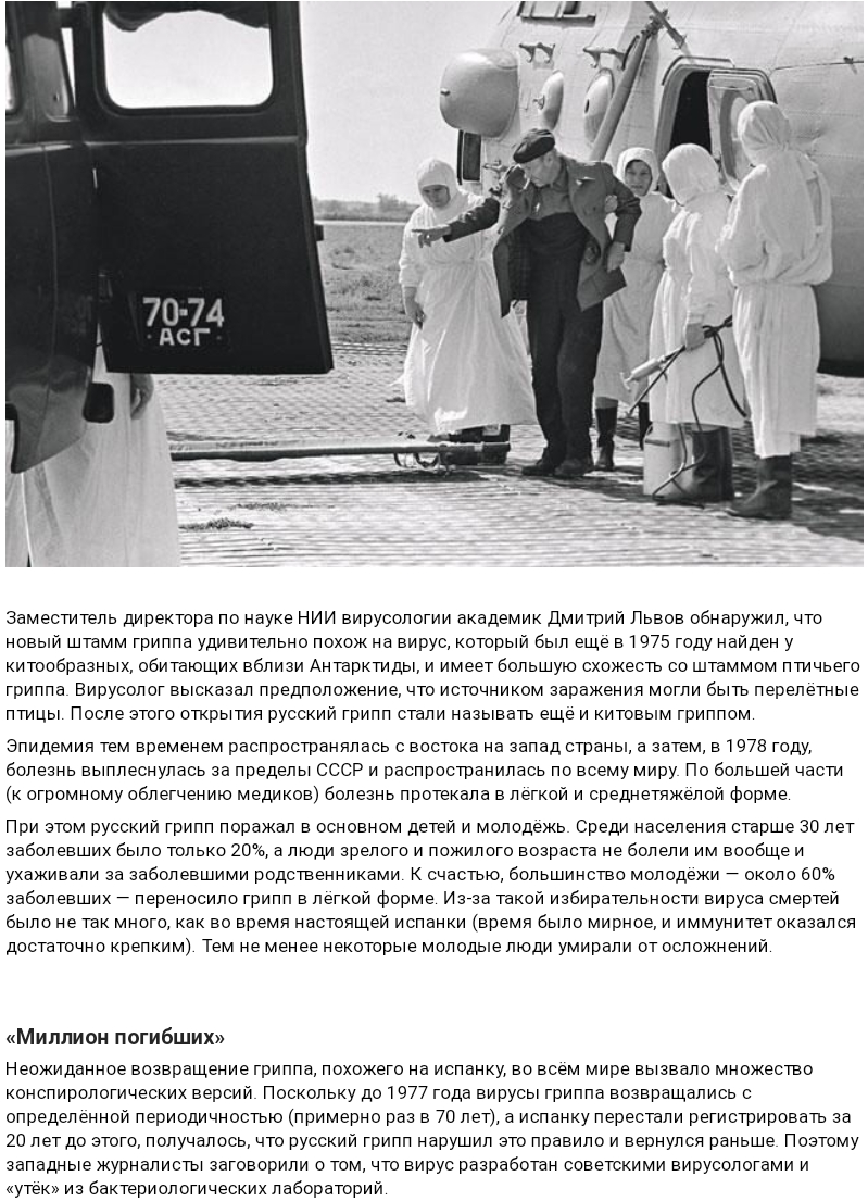 «Китовый» грипп молодых или самая загадочная эпидемия в СССР...