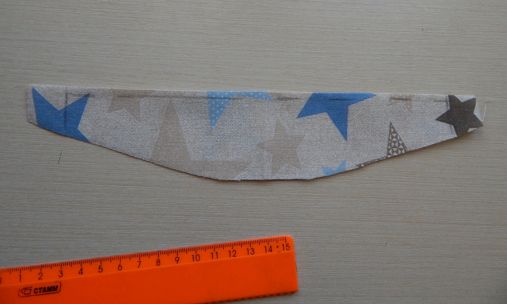 Где сгиб делаем строчку отступив 5 миллиметров. Затем на этих вух детальках отмеряем по 2 см по краям и отрезаем.