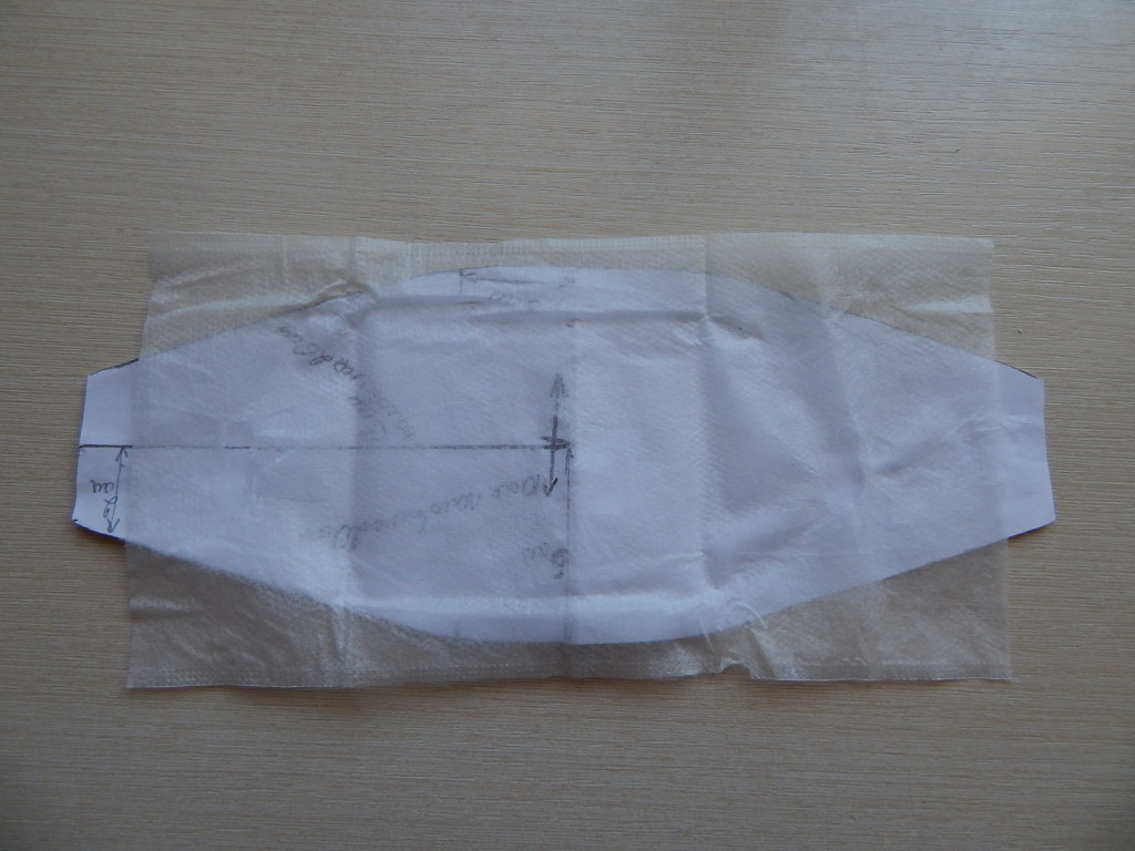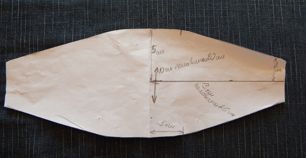 Это наши размеры: 8+2=10 и 24+2=26, по 2 см на припуски. Все ровненько отмечается, и там, где мы откладываем 3 см, нужно немного закруглить, чтобы маска не была квадратной!
