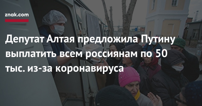 Депутат Алтая предложила президенту РФ выплатить гражданам по 50 000 рублей и поддержать бизнес!