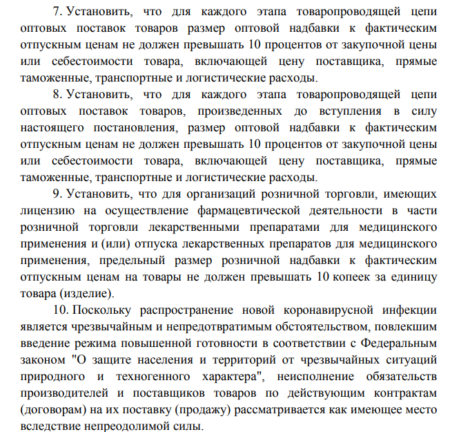 Согласно принятых изменений цена на ряд медицинских изделий не должна расти больше чем на 10% и более чем на 10 копеек за единицу товара на каждом следующем этапе продаж.