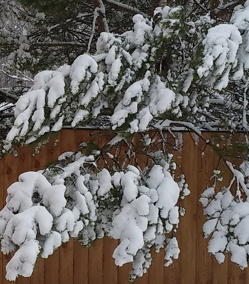У нас сегодня с утра - просто жуть что творится. Мало того, что ураганный ветер, так ещё днём снег пошёл. И это на цветущие деревья.