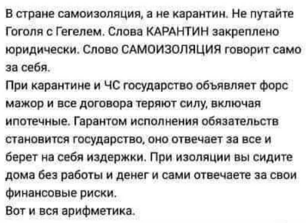 По сети интернет гуляют мифы о том, что в случае введения "режима чрезвычайной ситуации" на территории России из-за короновируса, вдруг чудесным образом потеряют силу все кредитные и ипотечные договоры: