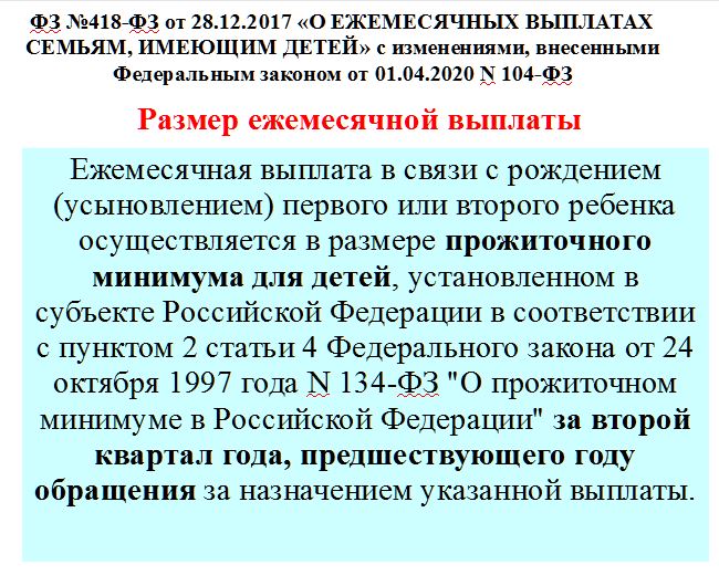 В соответствии с этим законом на каждого третьего и последующего ребенка выплачивают ежемесячное пособие на уход и содержание. При этом семья должна быть признана малоимущей и предоставить необходимый пакет документов. Размер ЕДВ (ежемесячной денежной выплаты) равен прожиточному минимуму на детей в регионах.