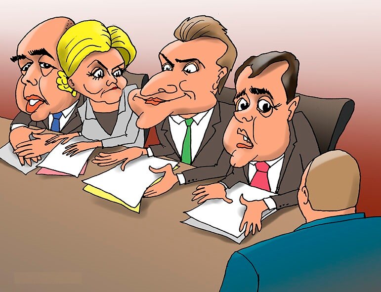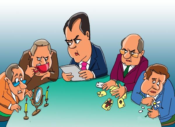 Присутствуют: чиновники из Департаментов полиции, торговли, туризма и недропользования. Департамент торговли возглавляет Бизнес-Леди.