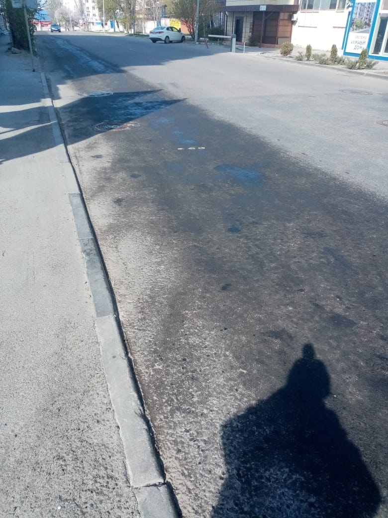 Жителем Ростова-на-Дону сфотографирована проводимая дизинфекция дороги. Это выглядит вот так. (См. фото)