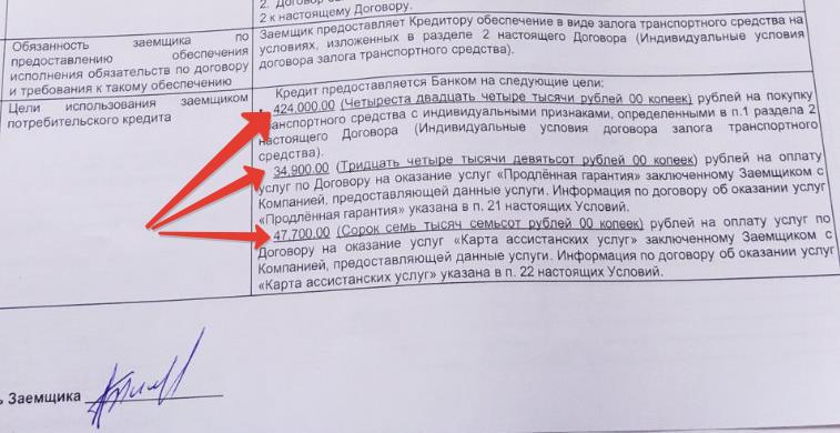 Автомобиль стоил 424 000 рублей, но потребителю пришлось брать в банке кредит на 506 600 рублей.