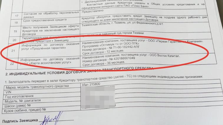 Если нетерпеливые читатели подумают, что речь идет опять о навязанной страховке, то нет. Речь пойдет о неуловимой компании, услуги которой были навязаны ПЛЮС БАНКом потребителю. Речь пойдет о «Продленной гарантии» и «Карте ассистанских услуг», которые умело подсунул банк в кредитный договор.