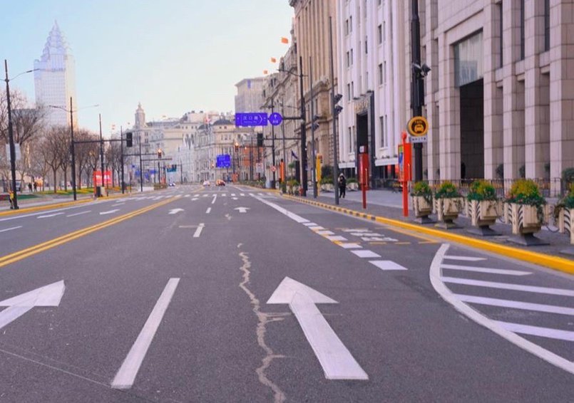 Так выглядит одна из центральных улиц Шанхая во время карантина