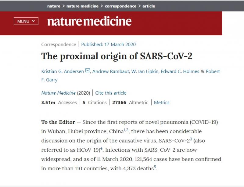 Полное исследование вируса провела международная группа учёных (участие принимали специалисты из Института Скриппса, Тулейнского университета, Сиднейского университета, Эдинбургского университета и Колумбийского университета). Учёные провели анализ о последовательности генома SARS-CoV-2 (нынешний коронавирус) и родственных с ним вирусов. Результаты исследования опубликованы в самом авторитетном общенаучном мировом журнале Nature. Критерии отбора статей в Nature чрезвычайно жестки и большинство статей отсеиваются ещё до рецензирования. Поэтому в него попадает исключительно проверенный материал.