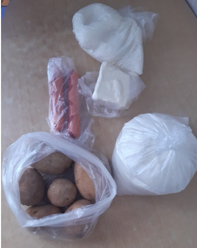 В Карелии школьникам из бедных семей выдали паёк: 5 картофелин, 2 сосиски, маргарин, муку и сахар.