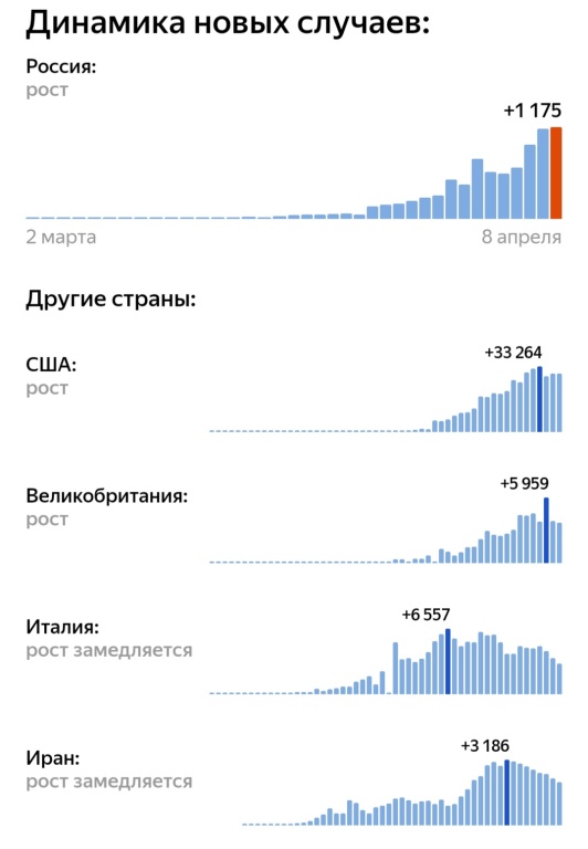 08 апреля 2020, 10:48 (по московскому времени). Источники: Роспотребнадзор, JHU: