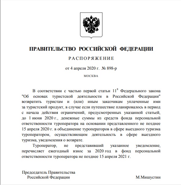 Документ: Распоряжение Правительства РФ от 04.04.2020 N 898-р
