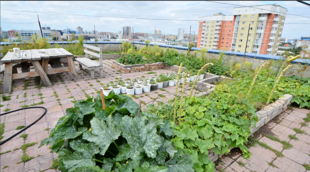 В условиях плотной застройки мегаполиса, одним из немногих возможных способов городского озеленения является озеленение крыш. Это решение успешно применяется во многих городах мира и приносит большую экологическую пользу: зелёные насаждения уменьшают общую температуру города, а также способствуют регулированию микроклимата в зданиях и снижают расходы на акклиматизацию в среднем на 20–30%. Кроме того, они защищают от шума, пыли, электромагнитных излучений и создают дополнительную зону отдыха вблизи дома. И обустраивать их можно не только травяным настилом, а цветами, деревьями и даже огородом.