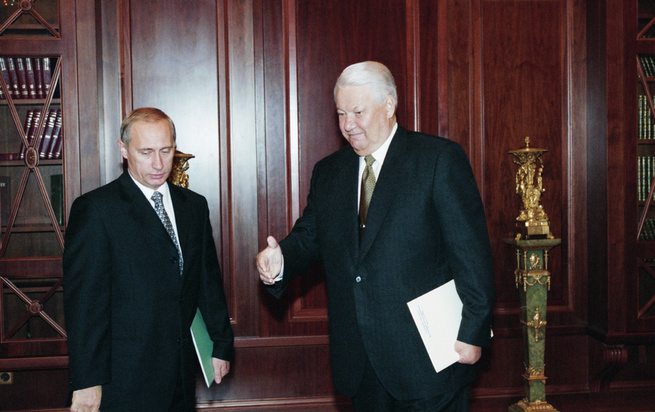 Итак, 31 декабря 1999 г. Путин приступил к исполнению обязанностей президента РФ. В 11 часов утра в кабинете президента России в Кремле Ельцин в присутствии Патриарха Алексия II (зачем там нужен был Патриарх, не очень понятно) передал полномочия Путину. В 12 часов дня, прервав эфир, все телеканалы передали Новогоднее обращение Ельцина, в котором он и сообщил о своей отставке и назначении преемника.