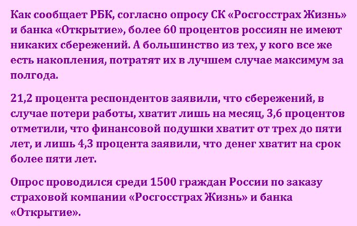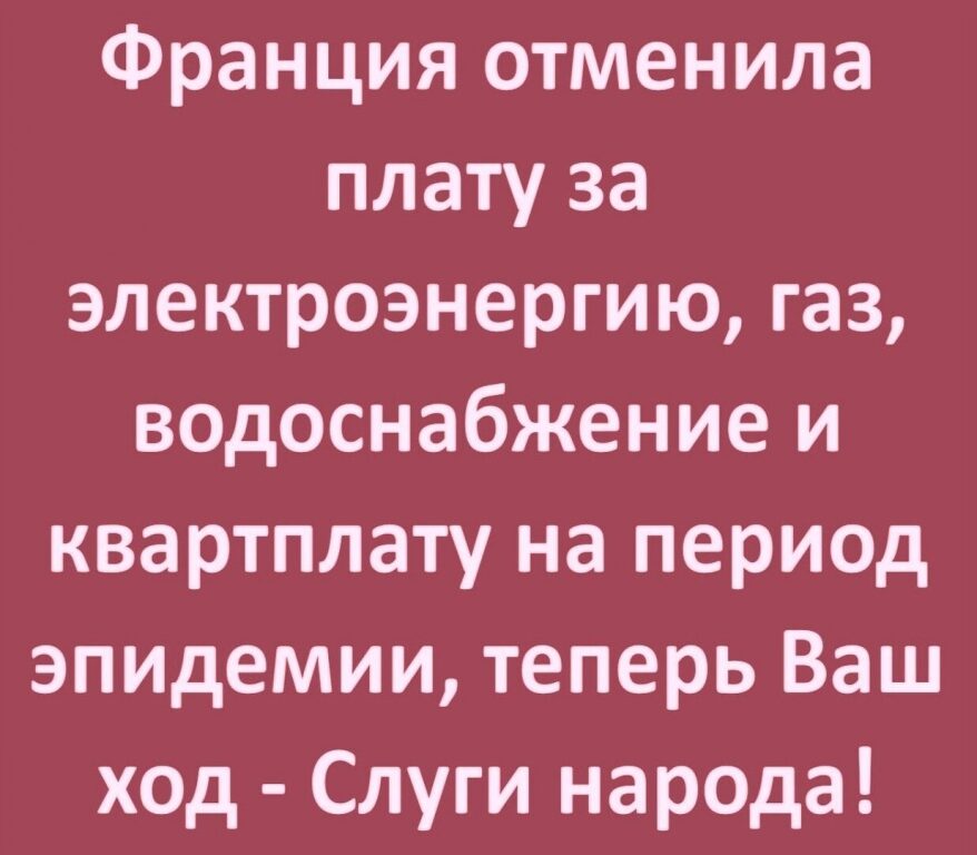 Не об этом речь, уважаемый! Речь о том, что правительство бросило население и наплевало на его проблемы, ограничившись сотрясением воздуха очередным "Указом" , не введя ЧП всеобщего карантина, "вооружив" полицию распоряжением штрафовать население за нарушение САМОизоляции, приведя в готовность технические средства для подавления беспорядков, обнадежив напоследок фразой, что всем гражданам помогать - бюджет треснет (автор Собянин, если я не ошибаюсь). И вся эта вакханалия называется самоизоляция. Откуда термин? У нас постоянно вводят новые термины, отличные от тех, что прописаны в законах, лишь бы из казны деньги не платить.