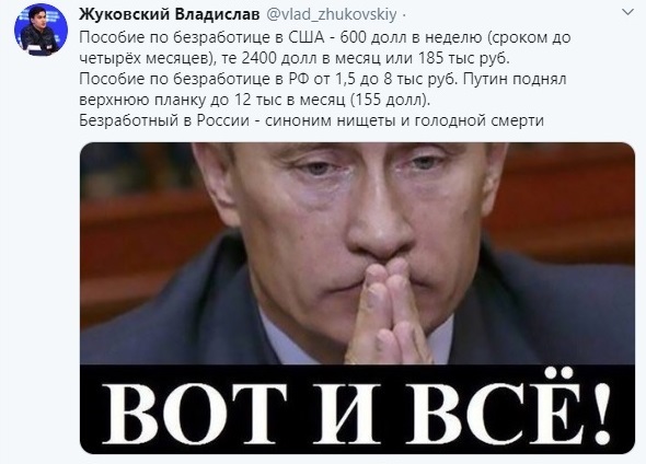 А знаете, что с вирусом бензин вдвое подешевел в штатах. Не смешите трусы. В Нью-Йорке квартиру снять можно за 1100$. Попробуйте в Москве найти за 10 т.