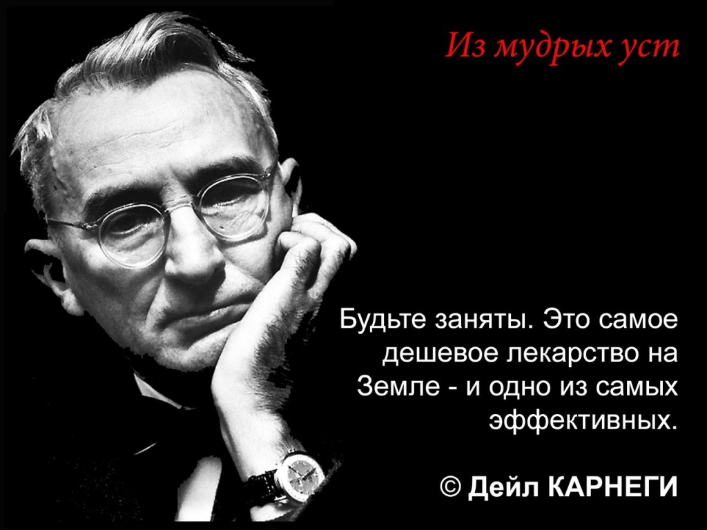 Да тут любая фраза подойдет, например: Пока не изобретено лекарство, будьте заняты, это самое дешевое лекарство на Земле, и самое эффективное.