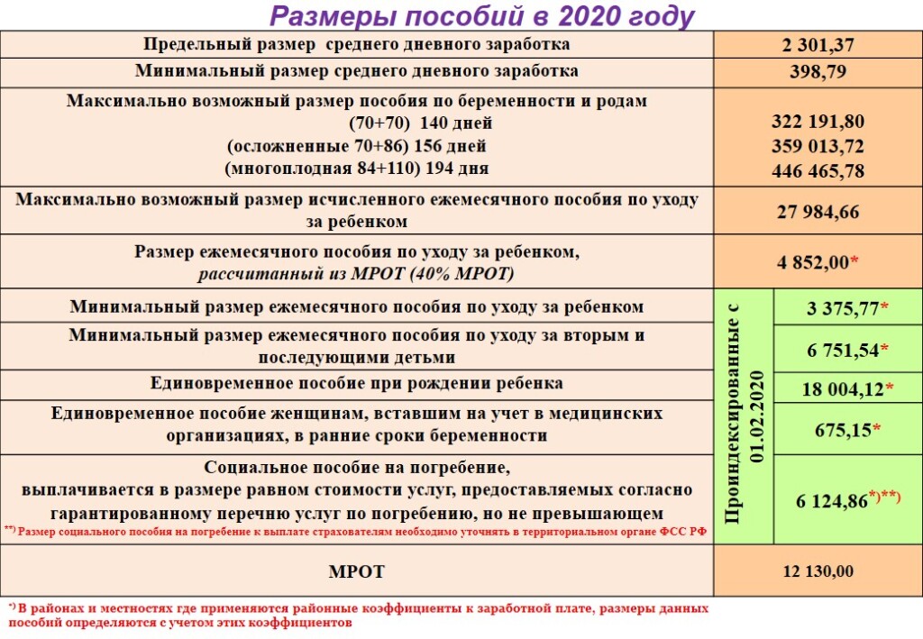 С 2020 года родители первого и второго ребенка смогут получать новое ежемесячное пособие до тех пор, пока малышу не исполнится три года. Кроме того, увеличились размеры существующих пособий. Дело в том, что с 1 января МРОТ вырос до 12 130 руб. (приказ Минтруда от 09.08.2019 № 561 н). Как еще изменились выплаты и какие поблажки чиновники приготовили россиянам в 2020 году, смотрите в таблице.