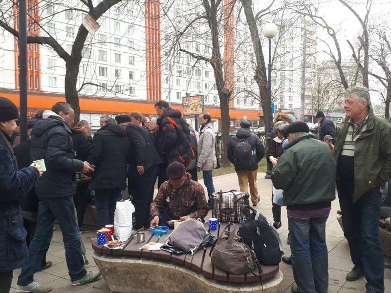 Люди стояли в очереди и старались соблюдать дистанцию, тем не менее, полиция посчитала раздачу еды за массовое мероприятие. Вместо того, чтобы выслушать активистов или самих бездомных, о том, что им негде поесть, полицейские разогнали всех с угрозами задержания, в том числе медиков из благотворительной организации «Дом друзей».