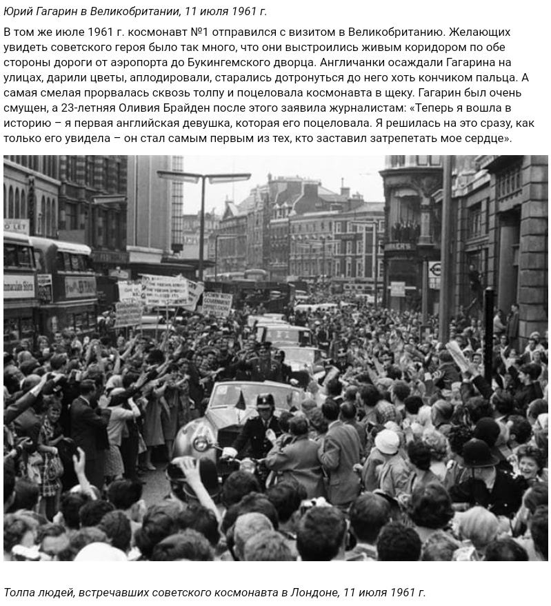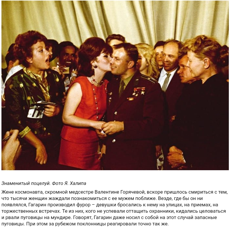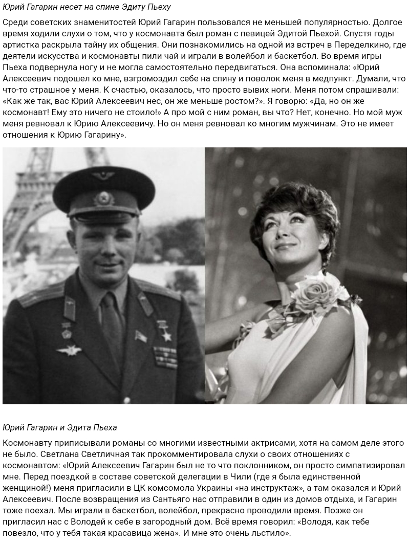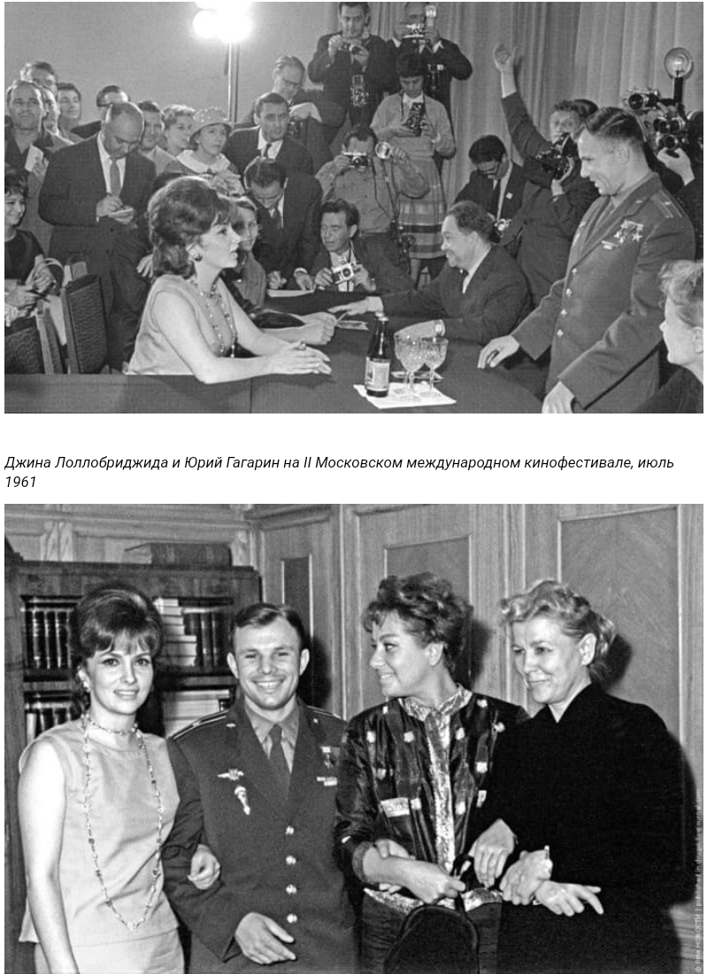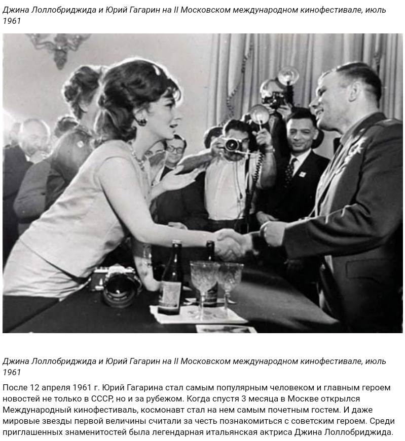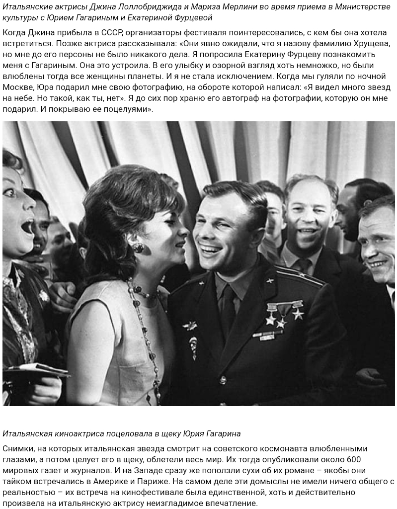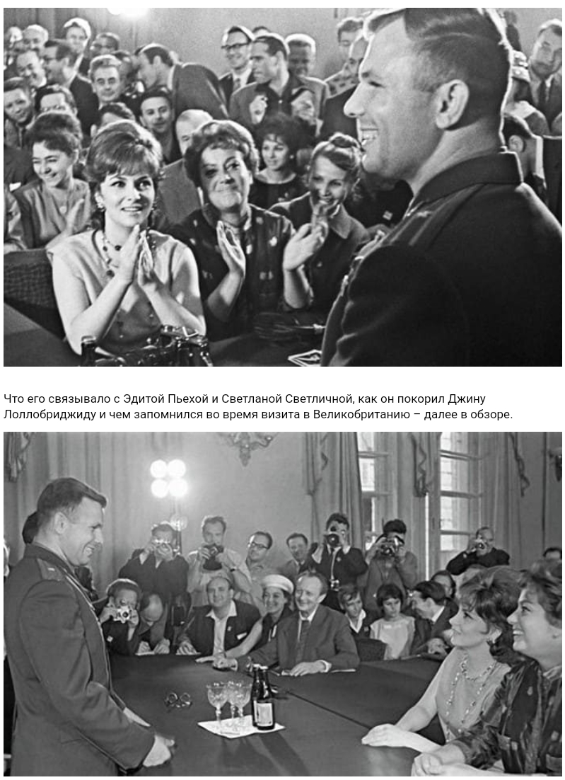 Юрий Гагарин - покоритель женских сердец: ланч с королевой, прогулка с Лоллобриджидой и Пьеха .....