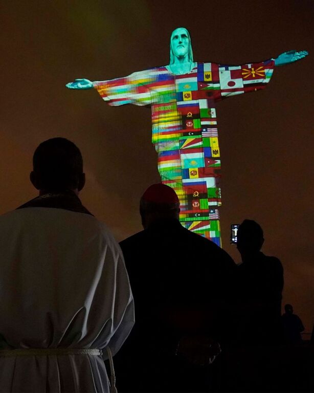 Отметим, что это уже не первый случай, когда знаменитую статую Христа-Искупителя используют для социального сообщения в связи с коронавирусом COVID-19. 18 марта на статую было спроецировано изображение флагов всех стран, которые пострадали от пандемии. Вместе с этим появилась надпись «Молитесь вместе», написанная на разных языках.
