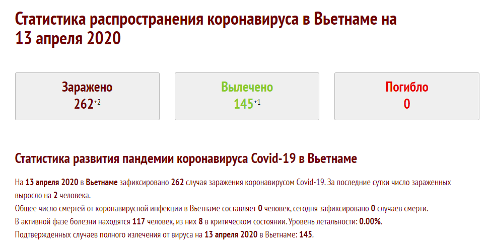 Например Вьетнам, имеющий территориальную границу с КНР и зафиксировавший первый случай заболевания вируса в января 2020 года данную пандемию просто игнорирует.