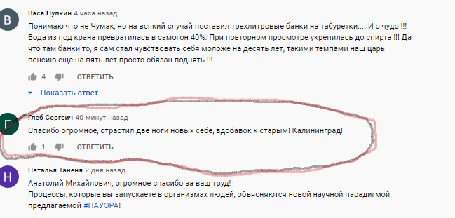 Подписчики Кашпировского уже наперебой пишут в комментариях, что после его видео-сеансов у них проходят симптомы гриппа, уменьшаются отеки в горле и вообще повышается настроение. Многие по-привычке опять ставят перед экраном воду для подзарядки.