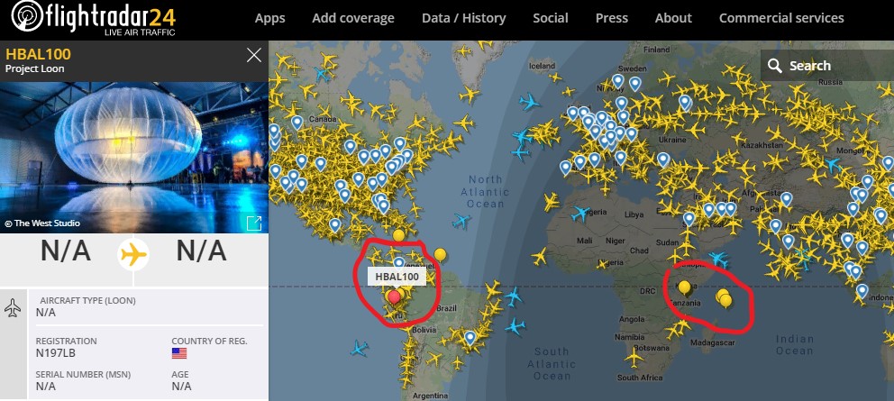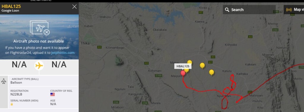 Так как это летательный аппарат, он отображается на Flightradar24 и выглядит это так