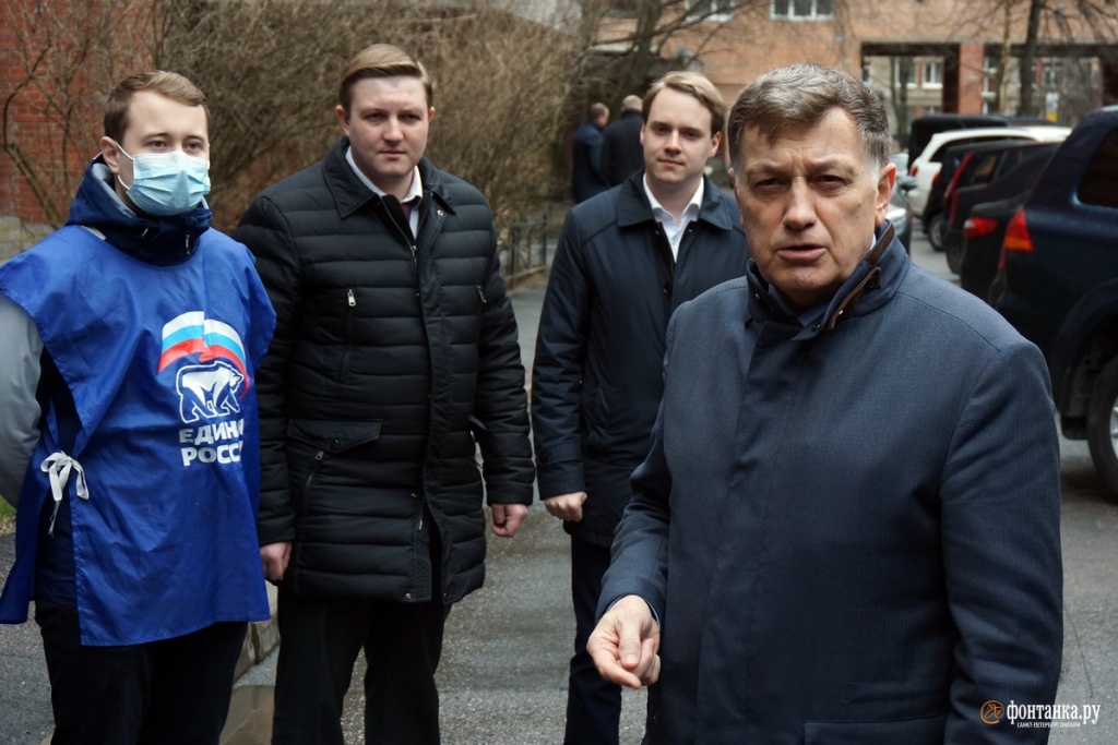 До приезда главного волонтера на первый адрес — дом, выходящий на набережную Карповки, — его молодые коллеги, две девушки в синей форме с символикой «Единой России», почетным караулом встали по обеим сторонам от двери парадной. Как выяснилось, этот элемент декорации повторялся от адреса к адресу. На каждой точке спикера ЗакСа ждали такие живые указатели.