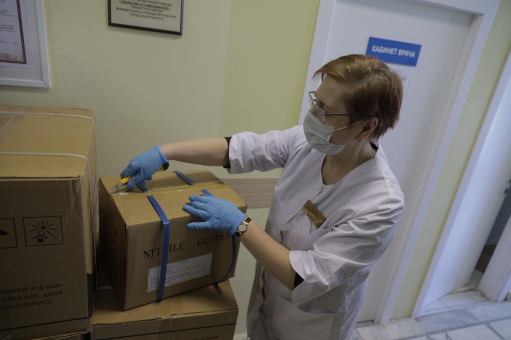 Гуманитарный груз для борьбы с коронавирусом, прибывший из Китая, продолжают распределять по медицинским учреждениям Свердловской области.