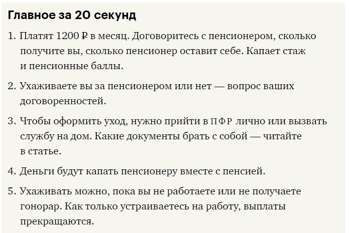 "1200 в месяц?"-Пенсионный платит, если за человеком ухаживает неработающий (в МЕСЯЦ) + период ухода засчитывается стаж.
