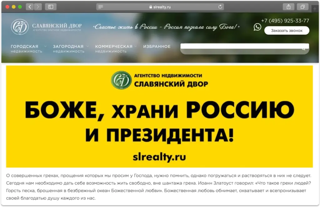 Это «социально-патриотическая» кампания агентства недвижимости «Славянский двор». Как говорится в описании на сайте агентства, лозунги заставляют «глубоко задуматься, по-настоящему вдохновляют и придают силы».