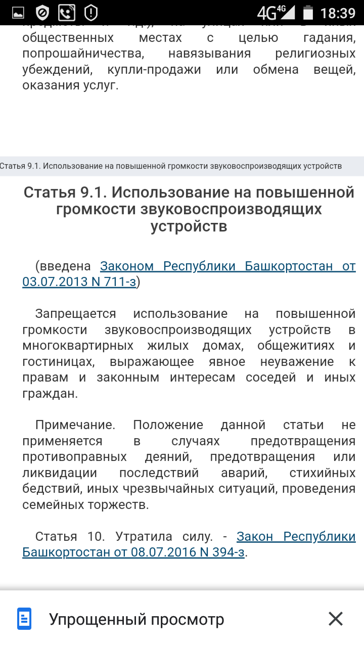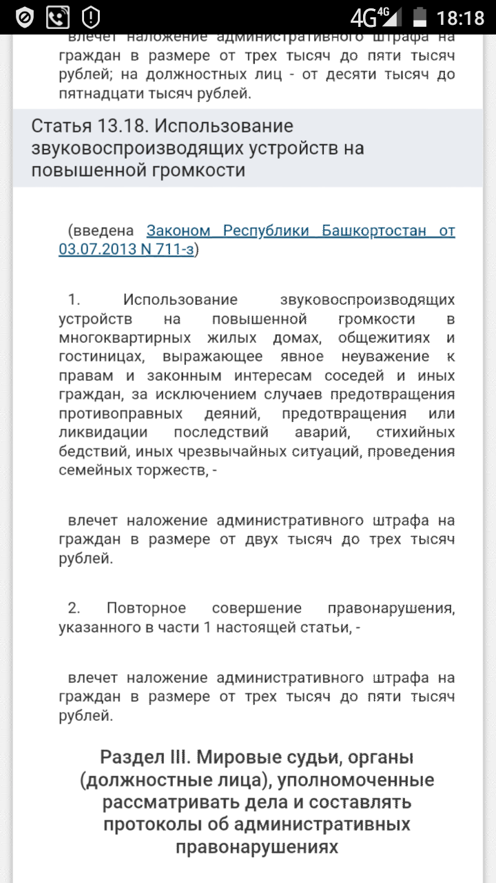И вот как это называется? Сотрудники МВД Башкортостана не знают об эти законах или не хотят брать на себя лишние дела? Сосед достаёт своей музыкой каждый день, а я не решаюсь вызывать наряд. На 99% я уверен что приедут некомпетентные в этом вопросе сотрудники. Ничего не сделают. А сосед приободренный таким раскладом еще больше начнет выкручивать громкость.