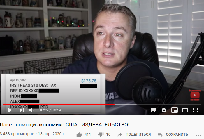 Исходя из данных на официальной странице Службы внутренних доходов США в твиттере, начиная с 11 апреля власти стали зачислять первые выплаты на счета американских налогоплательщиков. Предполагается, что деньги будут направлены на Поддержание Экономики Страны и Преодоление Кризиса, связанного с пандемией COVID-19. Антикризисный пакет мер включает в себя зачисления в размере 1200 долларов (чуть больше 88 800 рублей) для каждого взрослого человека и 500 долларов (37 тысяч рублей) для ребёнка.
