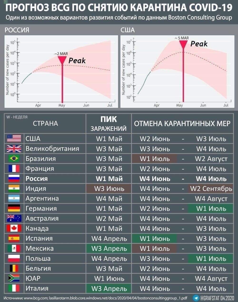 По мнению аналитиков «Boston Consulting Group» пик заболеваемости в России придется на первую неделю мая, а карантинные меры могут сохраниться вплоть до конца июля.