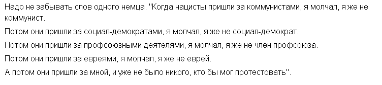 Именно. Я знаю, что я говорю. И поэтому 13 лет не хожу на голосования. Совесть хоть чистая. Это в Москве по особому разрешению допускаются к выборам оппозиционные кандидаты. Но Москва - не Россия. В провинции давно выборов нет.
