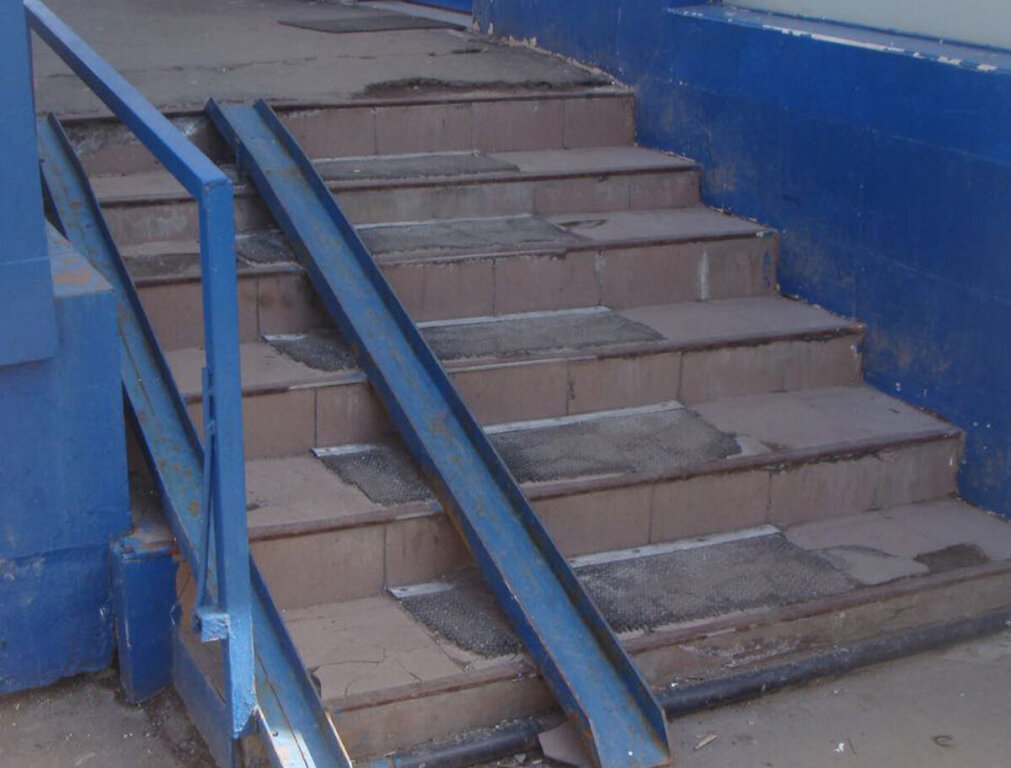 Хорошее начало. Только мало задумать ремонт. Его надобно ещё и качественно, а самое главное – безопасно провести. Вот с безопасностью проведения ремонтных работ была одна большая проблема. По результатам проведения ремонта оказалось, что все ступеньки на крыльце разной высоты с выступающими частями ограждений опалубки. При этом никаких табличек-ленточек-ограждающих знаков не было.