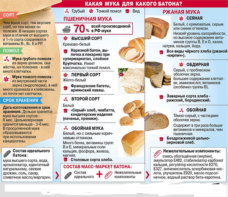 Конечно, химия встречается и в хлебе, выпеченном из зерна первых трех классов, но улучшителей там гораздо меньше. Разобраться в таком изобилии непрофессионалу практически невозможно. Запах скрывает упаковка, остается ориентироваться только на дату изготовления и цвет.