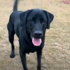 Собака исполняет счастливый танец