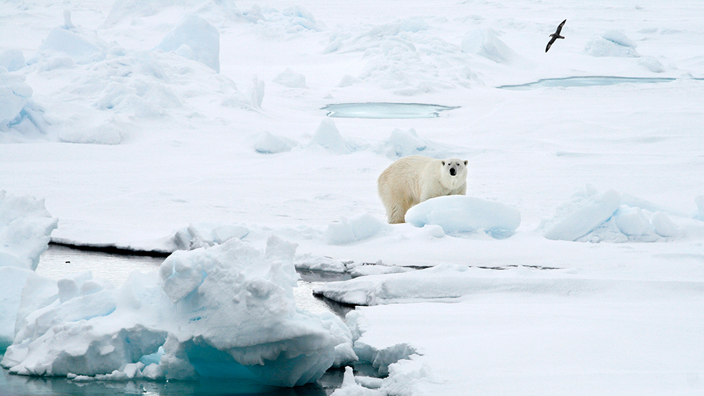 В настоящее время Северный полюс покрыт морским льдом круглый год. Каждое лето площадь морского ледяного покрова уменьшается, а зимой снова растет. Вследствие глобального потепления покрытые льдом площади Северного Ледовитого океана за последние несколько десятилетий быстро сократились. Это существенно влияет на экосистему и климат Арктики. Морской лед — среда обитания белых медведей и тюленей. Отражая солнечный свет, он защищает Арктику от перегревания.