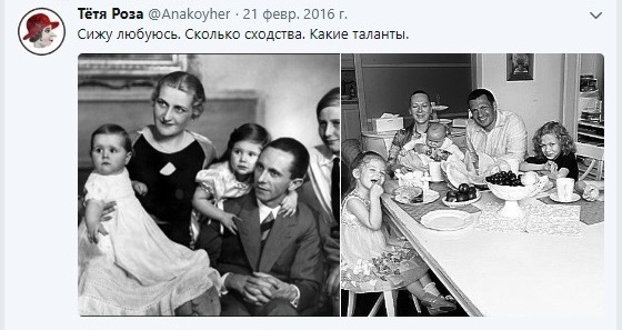 Дмитрий! На первом фото Геббельс со своей семьей! Напомню, что в конце войны он отравил своих шестерых детей и себя с женой. Какое может быть сравнение?