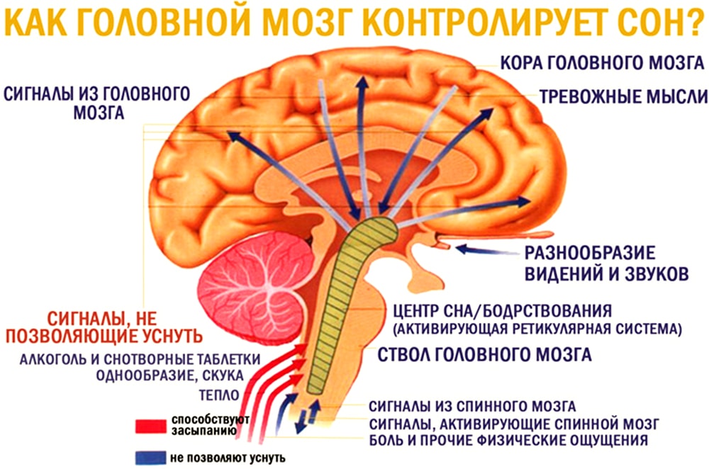Как мозг контролирует сон Пищеварительная система работает намного медленнее. С этим связан и тот факт, что не рекомендуется употреблять пищу перед сном. В противном случае пищеварительной системе придется трудиться и качество сна заметно ухудшится.