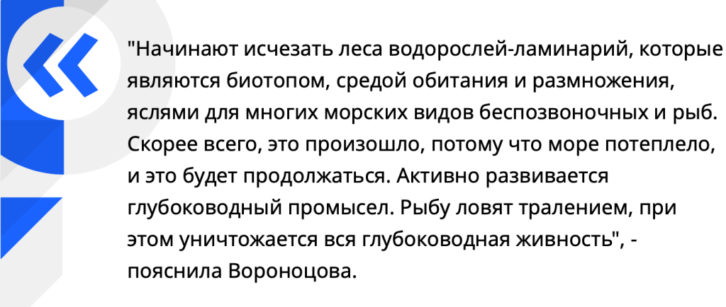 "Однако, дно на такой глубине очень мягкое, а это значит, что при такой добыче в океане будет висеть взвесь, которая будет затемнять толщу океана, и это точно будет влиять на живые организмы и на температуру океана", - отметила Воронцова.