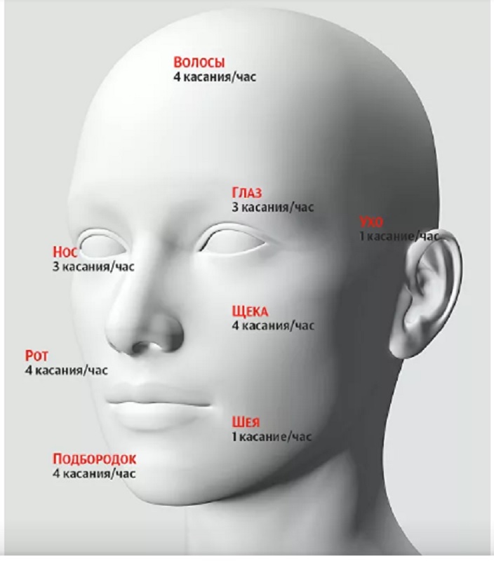 Прикосновение к лицу помогает людям справиться с эмоциями и сосредоточиться. Причем чем больше стресс, тем чаще человек дотрагивается до рта и носа, и дольше трет глаза. Грубо говоря, сейчас человеку следует не трогать лицо вообще (особенно вне дома), чтобы снизить вероятность заражения коронавирусом, но именно из-за коронавируса люди находятся в постоянном стрессе и трогают лицо руками, наоборот, чаще.