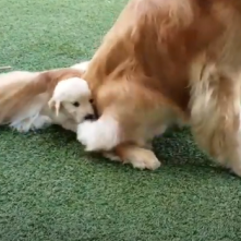 Золотистый ретривер не хочет иметь ничего общего с щенком