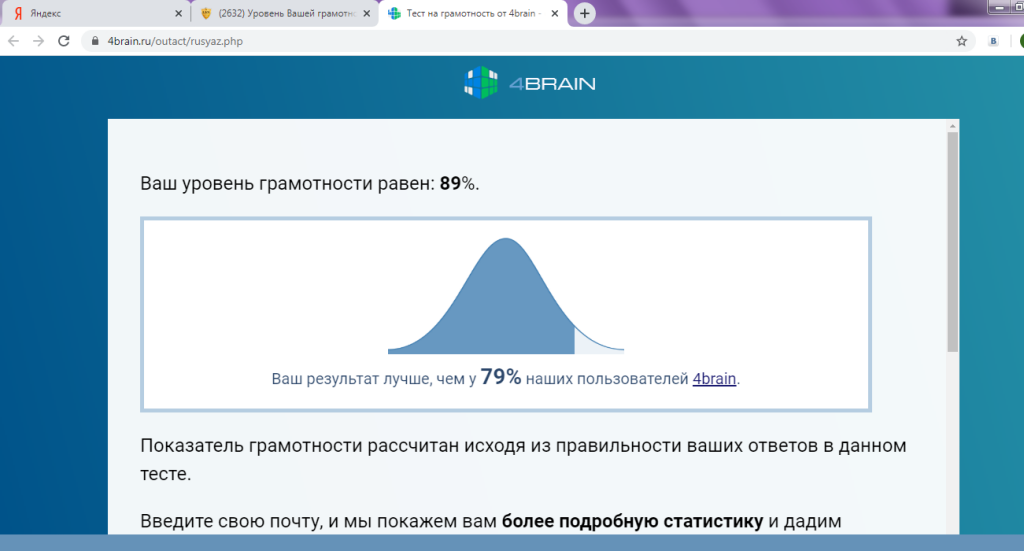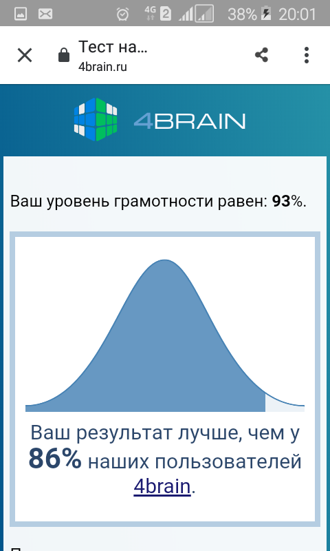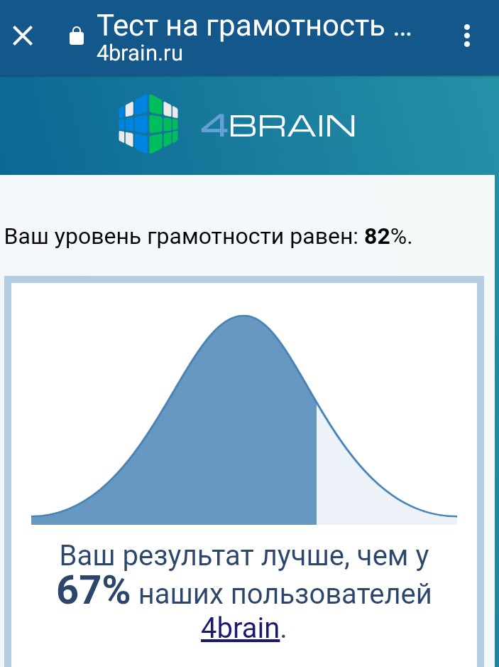 Решила повторить часть своего текста (со ссылкой на тест, указанный в заголовке публикации). "Предлагаю Вам пройти тест на грамотность «Проверьте своё знание русского языка!» и определить, насколько Вы хорошо знаете русский язык. 4brain.ru"